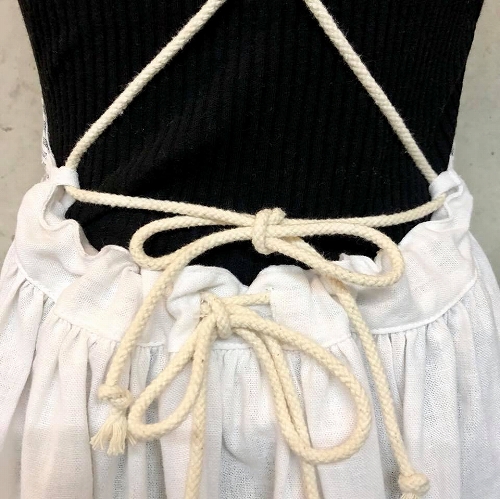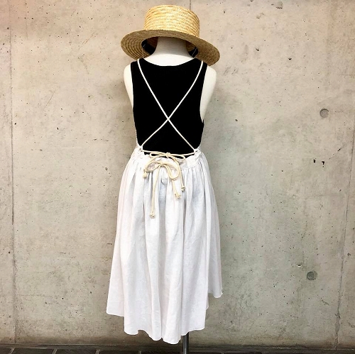 後ろで肩紐のリボンと、ウエストのリボンを結ぶ仕様♡普通のリボンではなく、ロープ状のリボンってところが他とないデザイン!マリン調な雰囲気で可愛いですっ(っ*´∀`*)っ♡