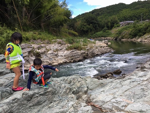 た~くさんの川魚を見つけて興奮したり、岩場を渡り歩いたり…