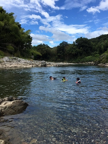 流れが緩やかなところでは、川泳ぎを楽しめます☆