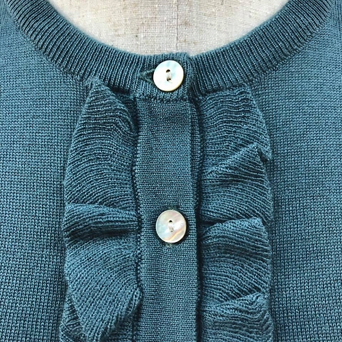 ハイゲージニットで、主張しすぎないフリルのデザイン、