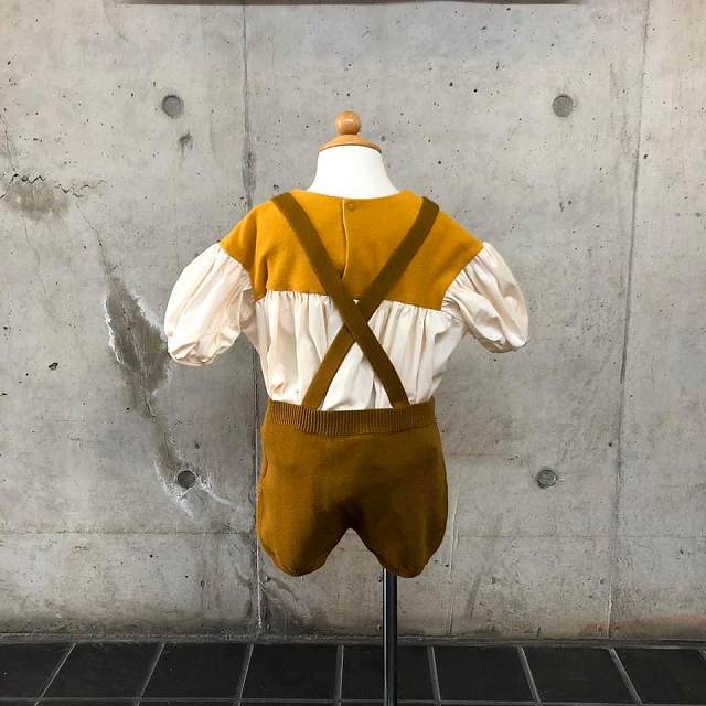 後ろから見ると、袖のボリューム感と肩紐のクロス、パンツの丸い感じがより際だって可愛く見えますね!( *´艸`)  ♡