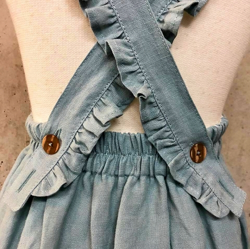 サスペンダーを上げるとフリルが際立ちます☆彡