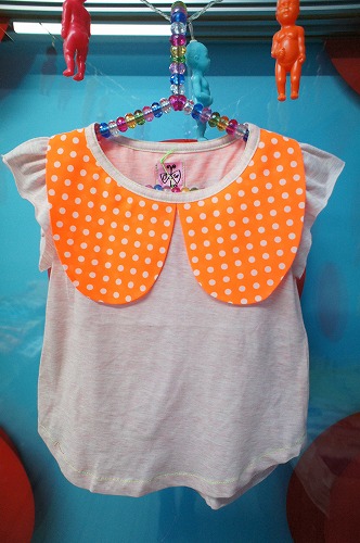 ドット柄の大きな襟がキュートなTシャツです☆☆