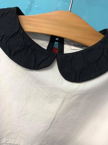 首元や裾、袖に切り返しのブラックがあることで