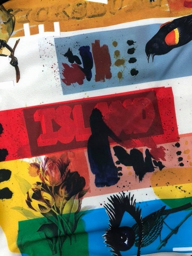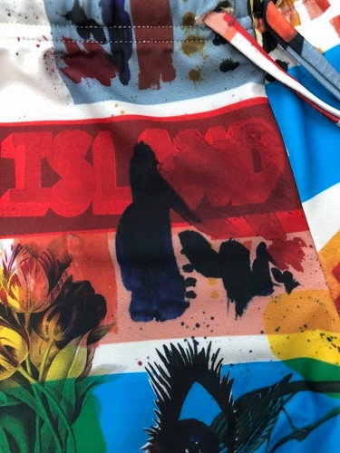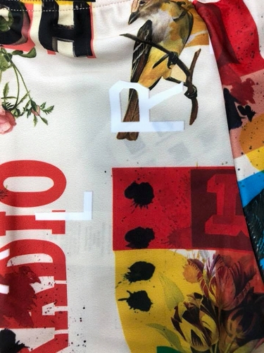 カラフルな総柄がパッと目を引き、