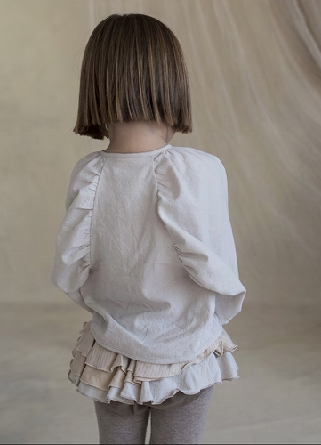 肩幅より内側にギャザーがはいっていて、普通のふんわりした袖と一味違うデザインが素敵☆.。.:*・°