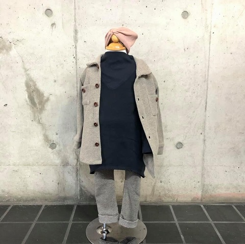 細見ですが、程よい厚さで良く伸びるニットなので、体感温度に合わせて、1枚でも、重ね着に使用しても、着ぶくれしないのが嬉しいところ(*´∀`)b♪